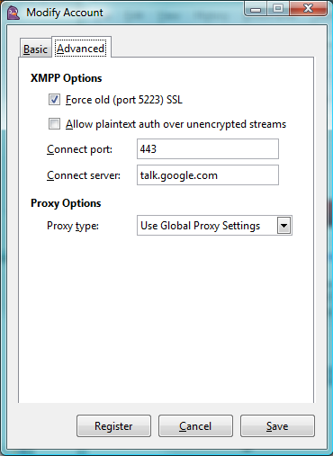 For Google Talk (XMPP), you may also need to set some advanced settings. At least, I have needed this at my last two jobs.